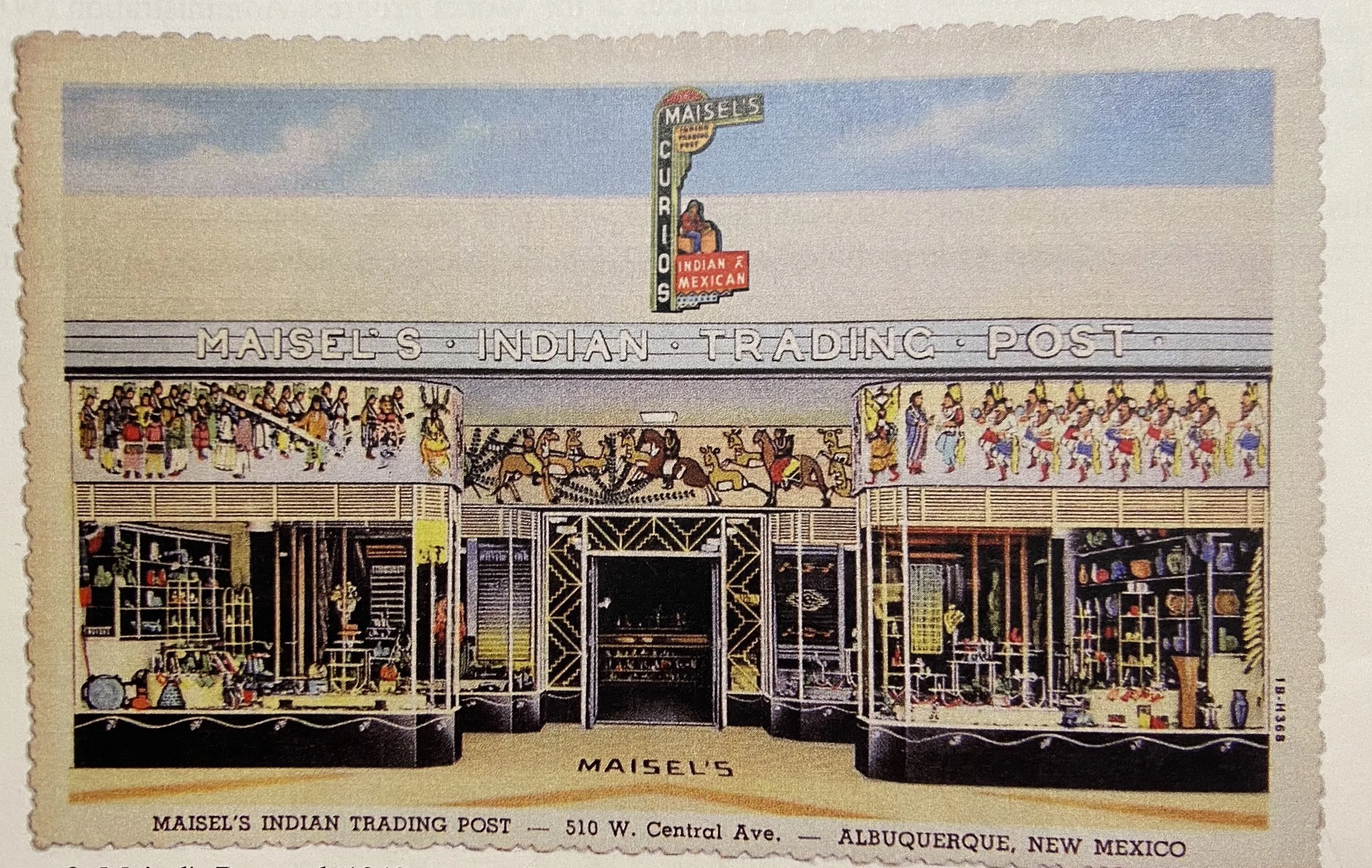 The final mural collaboration between Rush and Southwest indigenous painters was in the entrance and vestibule of Maisel’s Indian Arts and Crafts Store in downtown Albuquerque. These murals still exist. Rush and Awa Tsireh were the established painters in that project. Rush chose the rest from newer students at the Santa Fe Indian School. In his 1918 book, Paul Secord called those painters “an unparalleled grouping of many of the most talented Native American artists of their day.” ¹